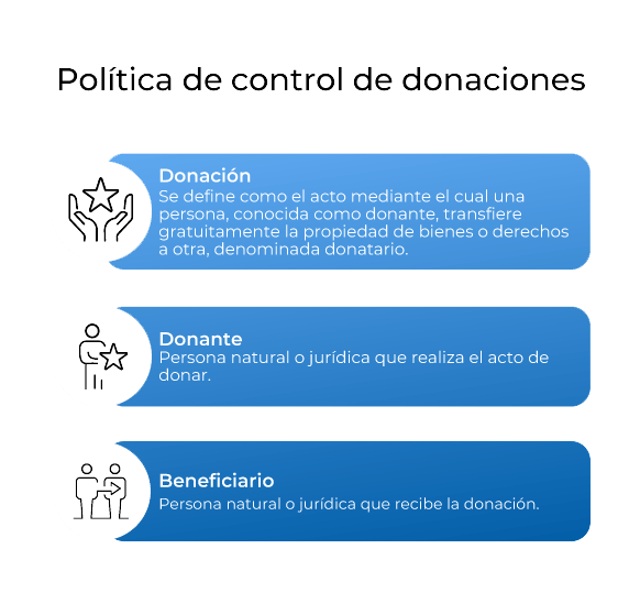 En todos los casos se requiere aprobación formal de Dirección General para cualquier tipo de donación. Las donaciones solo pueden sugerirse o proponerse a través de los integrantes del Comité Directivo con conocimiento del Oficial de Cumplimiento y con autorización expresa de la Dirección General.