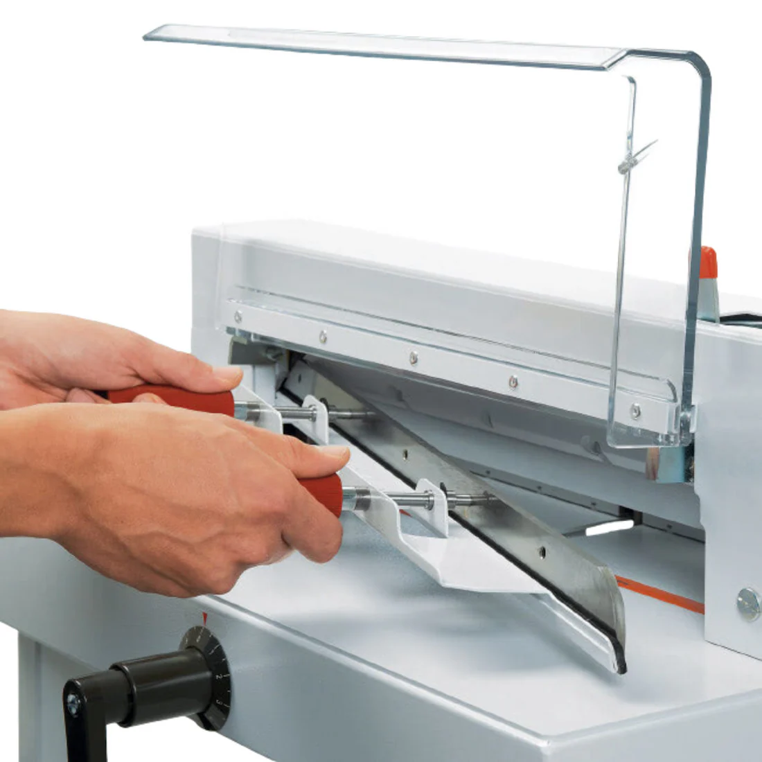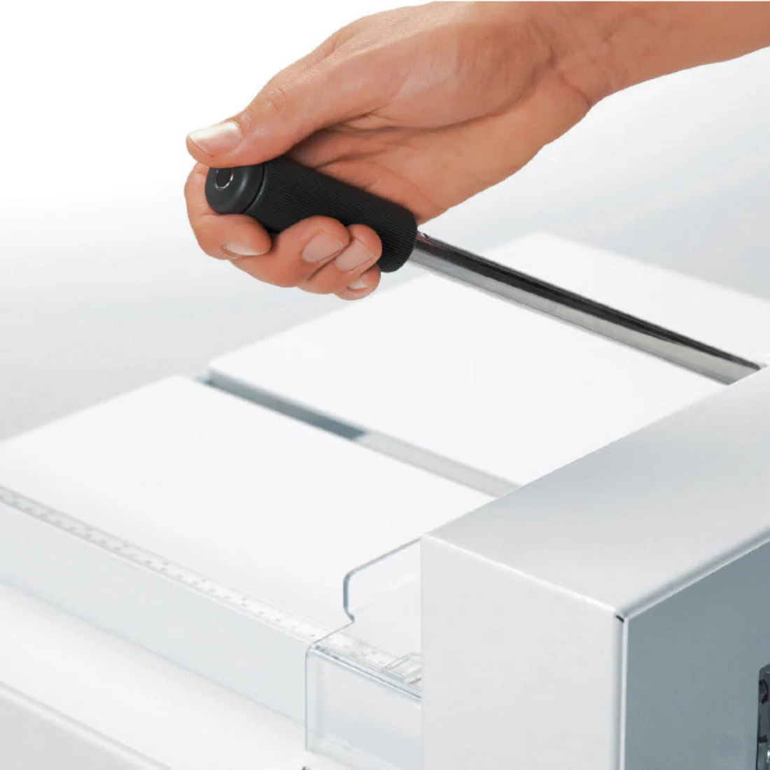 Guillotina nueva manual, robusta y precisa, ideal para corte profesional en pequeños volúmenes.