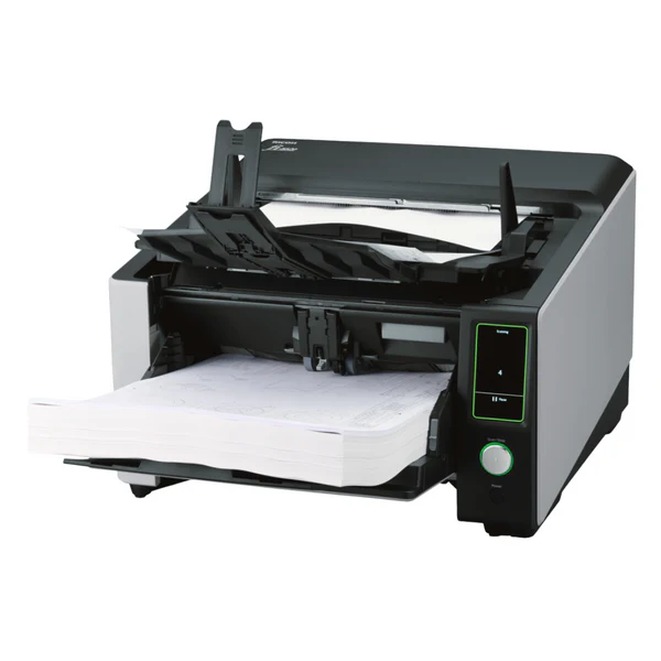 El Ricoh fi-8820 es un escáner de producción de gran velocidad, alcanzando 120 ppm / 240 ipm según la configuración. Con resolución óptica de 600 dpi y tamaño máximo A4, ofrece durabilidad y consistencia incluso en jornadas de alto volumen.