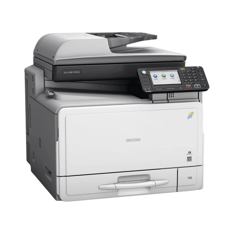 La Ricoh MP 301SP ofrece impresión y copiado monocromático hasta 31 ppm, con resolución de 600×600 dpi y capacidad para 1,350 hojas. Su diseño práctico y su bajo consumo energético la convierten en una excelente opción para pequeñas oficinas o grupos de trabajo.